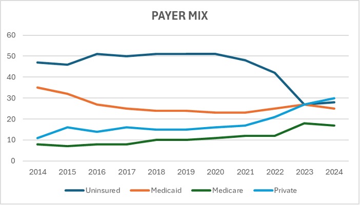 They also wanted to diversify the payer mix more broadly, and they managed to move that needle as well.
